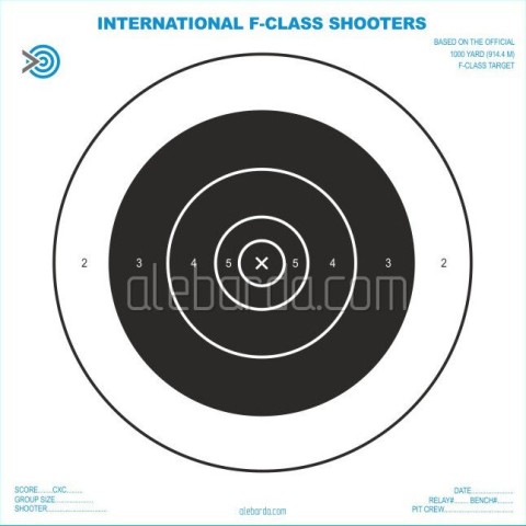 Мишень разработана на основе официальной мишени Ф-класс, отпечатана на плотной бумаге и имеет размеры яблока 25,4см, большего круга 112см и размер листа 1,4х1,4м.