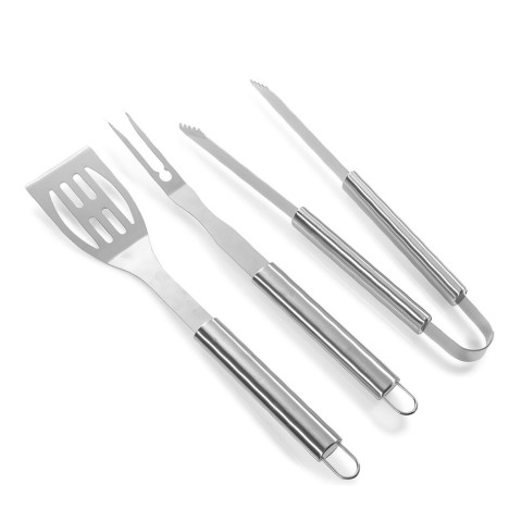 Набір включає 3 найбільш затребуваних аксесуара для приготування на грилі стейків, ковбасок, овочів і страв в лаваші: зручні щипці, лопатка і вилка для м'яса. Всі інструменти виконані з високоякісної нержавіючої сталі товщиною 1,5 мм, що гарантує їх довговічну службу. Набір складається в компактний водонепроникний чохол з високими зносостійкими властивостями. Завдяки транспортувальній ручці його зручно зберігати і брати з собою.