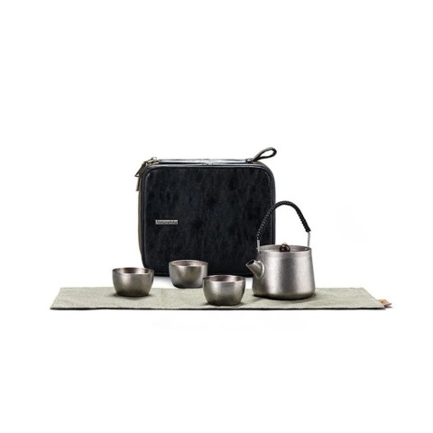 Основними складовими набору є чайник (250 мл) та 3 чашки (по 40 мл). Посуд виготовлений з титану, який цінується за високу міцність та несприйнятливість до корозії. До інших важливих переваг титану належать стійкість до впливу високих температур та безпека при контакті з харчовими продуктами та рідинами, що дозволяє насолоджуватися унікальним смаком та ароматом улюбленого гарячого напою, де б ви не знаходилися.