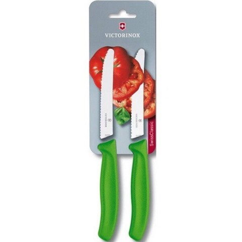 Набір кухонних ножів Victorinox SwissClassic, 11 см, серрейтор, 2шт. блістер, зелені