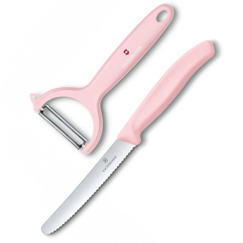 Набір кухонний Victorinox SwissClassic Paring Set 2шт з рож. ручкою (ніж, овочечистка Tomato and Kiwi) у подар.упак.