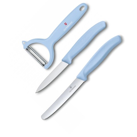 Набір кухонний Victorinox SwissClassic Paring Set 3шт з блакит. ручкою (2 ножа, овощечистка Tomato and Kiwi) у подар.упак.