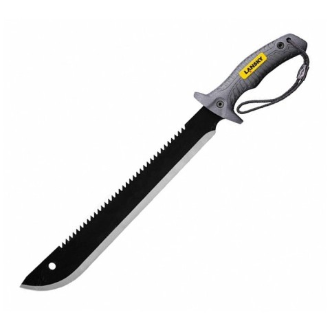 Клинок мачете виконаний з вуглецевої сталі, товщиною 3 мм, поєднує в собі звичайну ріжучу кромку і серрейтор на обуху. Велика зручна рукоять з полімеру Zytel забезпечить надійне утримання, як при рубанні, так і при використанні мачете в якості пилки.