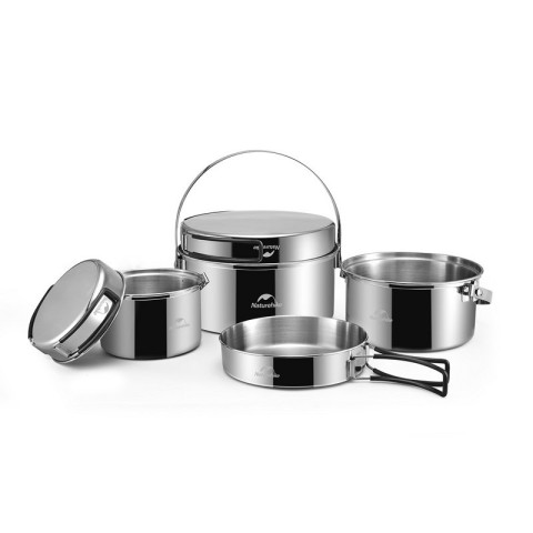 Набір посуду (2 каструлі, казанок, сковорідка) Naturehike NH22CJ005, нержавіюча сталь