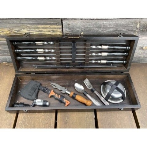 Інформація про набір шампурів ГетьманВсе необхідне для приготування різних страв на багатті. Такий набір стане чудовим подарунком для ваших рідних, близьких, друзів або колег по роботі. Оригінальний, солідний і 100% необхідний кожному.