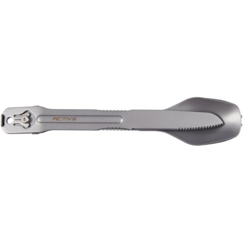 Набір столових приборів Active Knives&Tools Tres 2 - похідний комплект столових приборів на одну персону. Набір складається з ложки, виделки і ножа, виготовлених зі сталі. Даний набір завжди готовий до використання, займає мало місця і дає змогу компактно зберігати його в похідному рюкзаку.