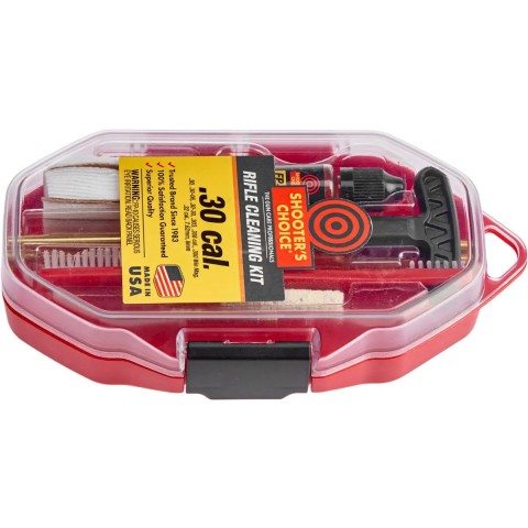 Набір складається з латунного шомпола на 5 секцій, бронзового і бавовняного йоржів, вішера, універсальної нейлонової щітки, сотні патчів і невеликої пляшечки фірмового мастила Shooter’s Choice FP-10 Elite. Набір розрахований на чистку зброї в калібрах: .30, .30-06, .303, .308, .300 Win. Mag., 7.62 мм, 8 мм.