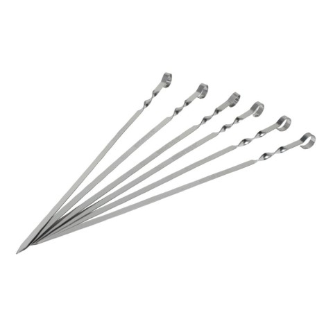 Мало який пікнік обходиться без приготування шашликів. Тому наявність шампурів в асортименті відпочиваючих обов'язково. Комплект шампурів Кемпінг B - 5204 відмінно підійде для цих цілей. Незважаючи на доступну ціну набору, він відрізняється якісним виготовленням. Хромована сталь забезпечує тривалий термін служби виробу, легкість і практичність в експлуатації. Шампура мають плоский перетин, завдяки якому ними зручно користуватися, а також легко обслуговувати. Шматки м'яса або інших продуктів добре утримуються на шампурах такої форми і рівномірно запікаються. Зберігається і транспортується набір в зручному текстильному чохлі.