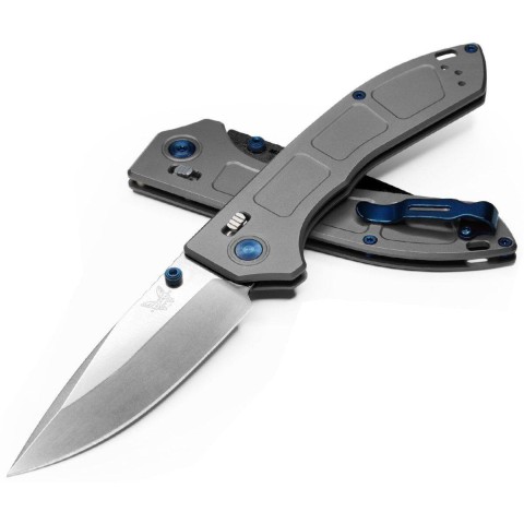 Тонкий, легкий та міцний. Маючи товщину всього 7мм, титанова рукоятка Narrows™️ є найтоншою повнорозмірною рамою, яку коли-небудь створювали на заводі Benchmade, що робить його найбільш кишеньковим, але таким, що економить місце, повнорозмірним ножем у лінійці бренду. Відповідно, творці також представили новий погляд на замок AXIS®, виключивши сталеві вкладиші та пружини омега та замінивши його на новий гладкий штифт замку та вузол торсійної пружини. Завдяки тонкому клинку M390 drop-point та яскравій синій фурнітурі цей стильний EDC доводить надлегку утилітарність до крайності.