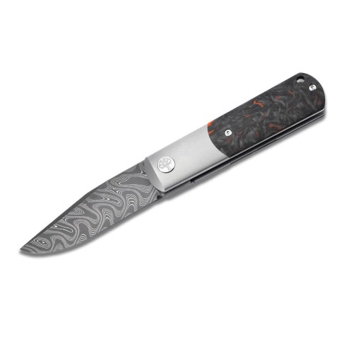 Інноваційні концепції, висока якість виготовлення та правильний вибір матеріалів – для деяких це черговий еталон, для Boker це зрозуміле. Одиниця виміру бренду з 1869 року: невідфільтрована пристрасть до захоплюючих ножів! Саме така справа з Boker Damascus Annual Knife 2024. Натхненний Boker BRLW, тонкий колекційний ніж бере за основу дизайн класичного Barlow і підкреслює його в сучасному ключі. Оптично зміщена і точно фрезерована титанова рукоятка є стилістично визначальною рисою, яка цитує характерний наддовгий болестер у передній частині відповідно до старої традиції і зі смаком обрамляє його в задній частині рукоятки сміливими лусочками рукоятки з товстого карбону у візерунку Dark Matter. Стримано інтегрований фрейм-лок фіксує лезо з шарикопідшипником, виготовлене зі 100-шарового дамаска, який Чад Ніколс викував вручну у захоплюючому узорі Black Boomerang. Стриманий фліппер і плоска фрезерована титанова кліпса (tip-up/r) надають елегантного вигляду, а дерево Boker декоративно прикрашає осьовий гвинт леза спереду. Отвір для темляка на ручці забезпечує додаткові можливості для носіння. Щорічний ніж, який суворо обмежений 999 екземплярами по всьому світу, поставляється з високоякісним футляром та сертифікатом справжності. Виготовлений вручну на мануфактурі Boker у Золінгені.