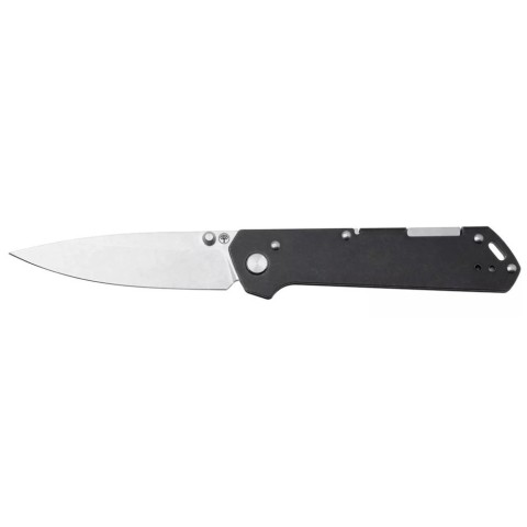 Клинок приводиться в робоче положення за допомогою шпеника або виїмки для нігтя, а надійний замок Back Lock фіксує його у відкритому стані, забезпечуючи безпеку під час використання. Міцне руків’я з нержавіючої сталі з обробкою Black Stonewash виконане із суцільного шматка сталі. На торці розміщений отвір під темляк та двостороння кліпса, що у поєднанні з надтонким профілем ножа дозволить зручно носити його на кишені.