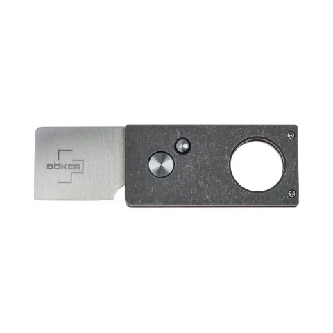 Хороша сигара, склянка міцного бренді та розмови про все на світі у колі товаришів були і будуть одним із найпопулярніших видів дозвілля. Правильне та чітке обрізання головки сигари є не тільки запорукою правильного використання та отримання максимум смаку, але вже стало своєрідною церемонією. Для цього потрібен надійний інструмент – Boker Plus Cigar Cutter – класична гільйотина для сигар. Клинок виготовлений із нержавіючої сталі 440С із сатиновим фінішем. Приводиться в робоче положення двома способами: при натисканні на кнопку спереду, клинок відкриється під кутом 45 °, відкриваючи отвір для вставки сигари, а якщо натиснути кнопку позаду - ніж відкриється повністю. Рукоятка виконана повністю з титану з обробкою Stonewash.