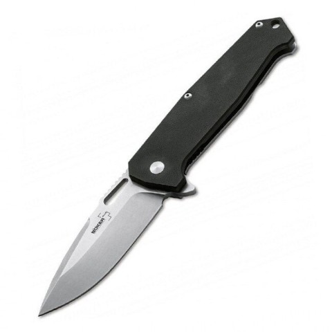 Дизайнером надійних складних ножів для повсякденного використання Boker Plus Hitman виступивши ножовий майстер з Міссісіпі-Джим Берк. Клинок виготовлений з американської високовуглецевої сталі D2, витягується за допомогою фліппера або отвору в обуху і фіксується замикаючим механізмом фреймлок. Є двохпозиційна кліпса і отвір для кріплення темляка. Залежно від моделі, передня накладка рукояті виконана з G-10 або з титану.