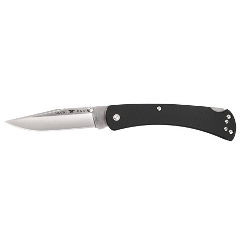 Новинка! Нарешті, легендарний Buck 110 можна з легкістю носити на кишені! Клнок виготовлений з фірмової порошкової сталі S30V, а ось рукоятьз G10 істотно втратила в обсязі, вазі і отримала дуже зручну двохпозиційну кліпсу. Бонусом є можливість відкриття однією рукою (правою \ лівою) за допомогою шпенька.