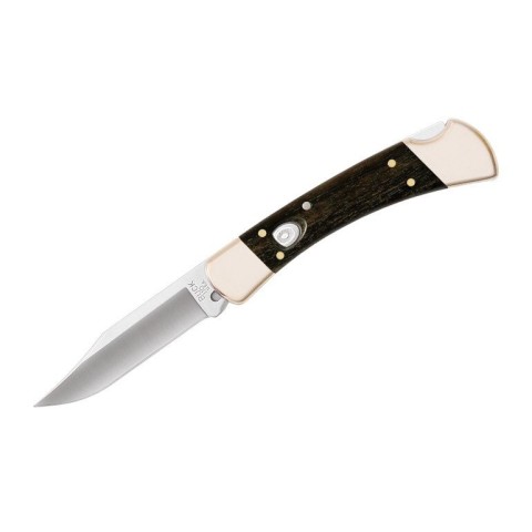 112BRSA - ще одна варіація легендарного Buck 112! На це раз Buck презентують автоматичну версію з латунними больстерами і руків'ям з ебенової деревини. Ніж отримав досить стандартну форму клинка, сконструйованого в форм-факторі bowie, має гладку ріжучу кромку, що дозволяє значно спростити процес заточування і експлуатації, а так само збалансовані спуски дозволяють витримувати значні поперечні навантаження. З боку обуха розташована спеціальна перфорація, значно полегшує відкриття леза, і уберігає його від зайвих подряпин. Матеріалом для виготовлення клинка стала фірмова сталь 420HC. Знаменита обробка цієї стали за технологією BOS додає клинку міцність і стійкість до корозії без втрати якості різу і утримання заточування і значно відрізняється від будь-якої стандартної 420-й стали. Дана модель відкривається шляхом натискання кнопки на рукояті. Закриття у ножа ручне за допомогою замка типу back-lock.