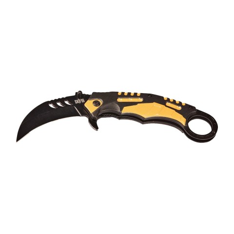 Клинок ножа виконаний з недорогої сталі марки 3Cr13, яка відрізняється хорошими показниками корозійної стійкості, а також простотою правки різальної кромки. Витягується клинок за допомогою фліпера або шпеника і надійно фіксується у робочому положенні сталевою пластиною замка Liner Lock. Ніж обладнаний системою шарикопідшипників, що сприяє легкому та плавному витягуванню клинка.