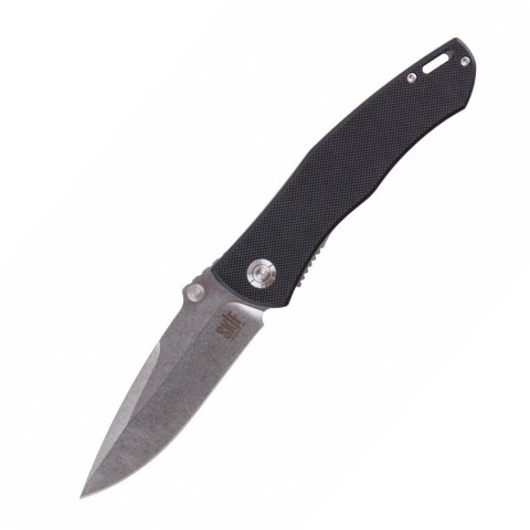 При першому ж знайомстві ніж SKIF Swing викликає асоціації з "робочою конячкою", якій по плечу навіть складні завдання. І дійсно-широкий, досить потужний, клинок з упором для великого пальця контролюючої руки і покриттям "стоунвош", не тільки захищає поверхню клинка, але і приховує сліди використання, а також зручна рукоятка з міцного і, одночасно, легкого, склотекстоліту G10, тільки підтверджують перше враження. Модель SKIF Swing буде зручна не тільки для щоденного носіння, але і для «вилазок на природу». Кліпса для зручності носіння.