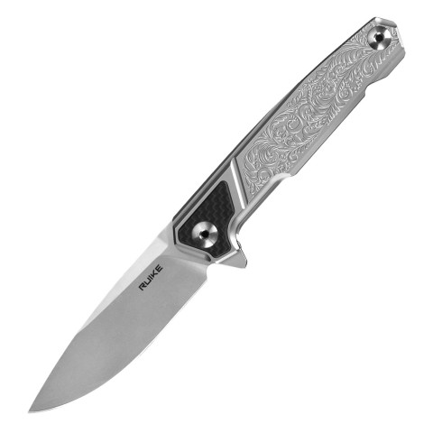 Цей ніж призначений для тих, хто в захваті від варіанту Ruike M875-TZ, але при цьому віддають перевагу лезо із сталі 14C28N і ручку зі сплаву 420. Ефектна складна модель, на рукояті є гравірування у вигляді орнаменту з жимолостю. Жимолость за традицією вважається символом добрих побажань. У ножі є захисний механізм BetaPlus, який запобігає випадкому закриттю клинка. Компактна модель стане в нагоді туристам, мандрівникам, і цілком підходить для щоденного носіння. Дуже зручний, легкий, гарний ніж.