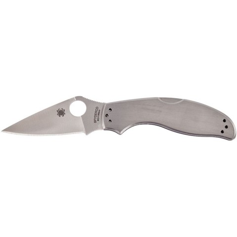 Spyderco UpTern - це складаний ніж і гордий член сімейства Value Folders. Клинок профілю Drop Point виконаний з класичною для Spyderco геометрією «потрійний клин» з нержавіючої сталі 8Cr13MoV твердістю 56-59 HRC з сатиновим, антибліковим фінішем. На обусі клинка передбачені дрібні насічки для упору великим пальцем. У робоче положення клинок наводиться за допомогою зручного підпальцевого отвору. Фіксується у відкритому вигляді за допомогою замка Back Lock. Накладки на руків'ї виконані із міцної нержавіючої сталі із зручними виїмками під пальці. 4-х позиційна кліпса може бути встановлена вгорі або внизу руків'я як з правої сторони для правші, так і з лівої - для шульги. Модель доступна зі звичайною різальною кромкою та напівсерейтором.