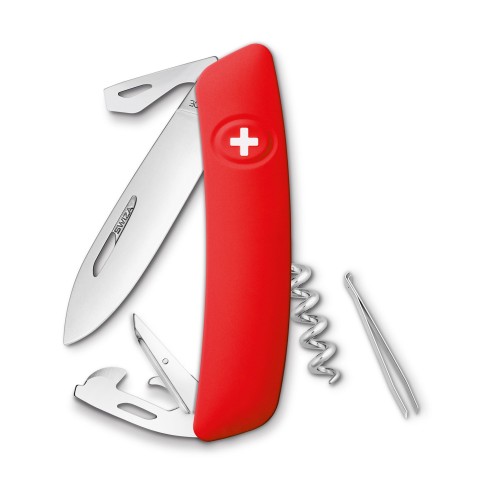 Ножі Swiza безпечні. Замок Safety Lock, вбудований в швейцарський хрест на рукояті, активується натисканням на заховану в ньому кнопку. Надійно зафіксований лайнер не дасть клинку скластися вам на пальці. Розкрийте клинок і насолоджуйтеся чудовим безпечним різом. Для того, щоб закрити ніж, необхідно затиснути хрест і плавно заховати клинок в рукоять. На відміну від інших ножів, вам необхідно просто затиснути кнопку, а не відсувати сам лайнер всередині рукояті.