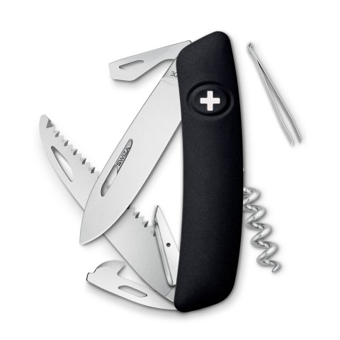 Ножі Swiza безпечні. Замок Safety Lock, вбудований в швейцарський хрест на рукояті, активується натисканням на заховану в ньому кнопку. Надійно зафіксований лайнер не дасть клинку скластися вам на пальці. Розкрийте клинок і насолоджуйтеся чудовим безпечним різом. Для того, щоб закрити ніж, необхідно затиснути хрест і плавно заховати клинок в рукоять. На відміну від інших ножів, вам необхідно просто затиснути кнопку, а не відсувати сам лайнер всередині рукояті.