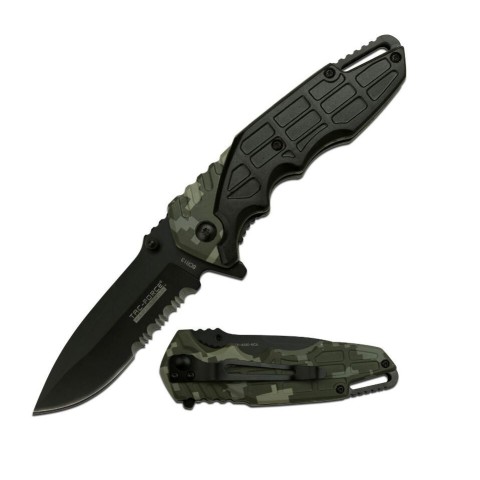 Підпружинений тактичний складаний ніж із лайнерним замком та відкриттям з двостороннього шпенька для правші або шульги або з фліппера. Особливістю моделі є напівсерейторна комбінована заточка, що дозволяє працювати з волокнистим матеріалом.