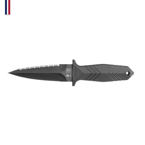 Невеликий розмір робить його чудовим запасним ножем, а лезо з повним хвостовиком із нержавіючої сталі MOX® забезпечує виняткову продуктивність. Чорне PVD-покриття забезпечує як функціональні, так і естетичні якості - воно має високу зносостійкість і корозійну стійкість, а також надає ножу досить агресивного вигляду. Його чорний колір також збільшує його здатність до маскування. Поліамідна рукоятка, армована скловолокном, здатна витримати найскладніші ситуації.