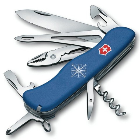 Швейцарский карманный армейский нож Victorinox Skipper с фиксатором и эмблемой компаса. Специально разработан для моряков, рыбаков и всех, кто сталкивается с лодками, канатами и такелажем. Ключевым в ноже является молниеносная способность открываться и быть готовым к работе. Лезвие фиксируется в открытом положении замком типа лайнер-лок, а накладки на рукояти исключают скольжение в руке . Кроме того, нож Victorinox весьма практичен и содержит все основные инструменты для повседневной жизни. Нож изготовлен из высококачественной нержавеющей стали. Рукоять выполнена из голубого матового нейлона. Размер – 111x31.5x18мм. Вес – 123 г.