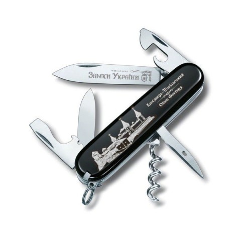 Швейцарський армійський ніж SPARTAN UKRAINIAN CASTLE 91мм/2 шари/12 функцій/чорні накладки/штопор/кам'янець-Подільський Victorinox 1.3603.3R20