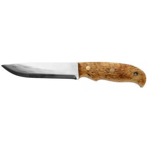 Руків’я ножа, традиційно, формують профільовані накладки з натуральної деревини карельської берези, які фіксуються заклепками.