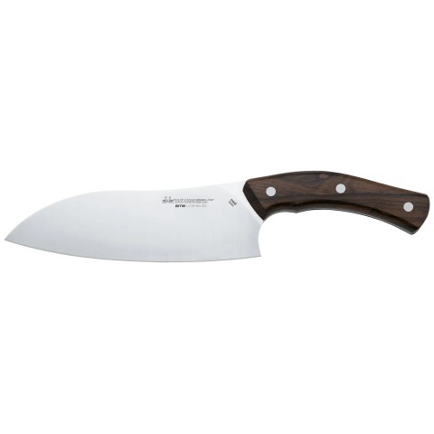 Сантоку - це ніж родом з Японії, відомий своєю універсальністю та здатністю справлятися з широким спектром завдань під час нарізання продуктів. Його характерні особливості - широке й пласке лезо, яке полегшує нарізання, шинкування та рубання інгредієнтів. Заокруглене вістря забезпечує кращий контроль під час різання та зменшує ризик пошкодження продуктів.