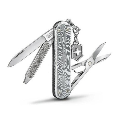 Колекція Classic Brilliant Collection - преміальна колекція вишуканих ножів, вона стала справжньою родзинкою серед невеликих кишенькових ножів Victorinox Classic Collection. Кришталеве, карбонове та руків’я з дамаску додає блиску, елегантності та гламуру цим популярним і цінним інструментам.