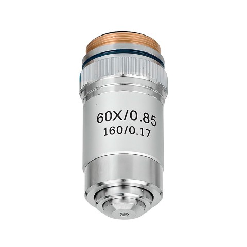 Об'єктивSIGETA Achromatic 60x/0.85– ахроматичний 60-кратний проміжний об'єктив між стандартними значеннями кратності: 40x та 100x. При встановленні в револьвер мікроскопа забезпечить розумний компроміс між збільшенням та збереженням достатньої ширини спостережуваної області (полем зору).Конструктивні особливості:Ахроматична оптична конструкціяСтандартна для більшості біологічних мікроскопів посадкова різьбаПідпружинена конструкція запобігає пошкодженню об'єктива та зразкаСухий тип об'єктива для використання без імерсійної оліїТехнічні характеристики:Збільшення: 60хЧислова апертура: 0.85Парфокальна відстань: 45 ммТип оптичної корекції: ахроматІмерсія: без імерсіїСтандарт: DINСумісна товщина покривного скельця: 0.17 мм