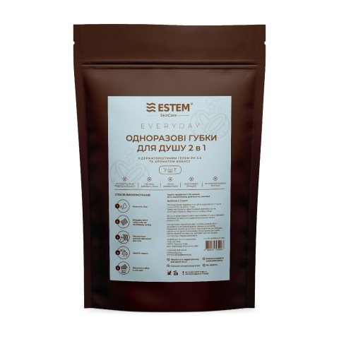 Замовляйте комплект з 7 губок для душу від Estem Everyday зараз та насолоджуйтесь неймовірно м'яким, швидким та економічним процесом душу з ароматом тропічного кокосу. Вашій шкірі буде забезпечений преміальний та безпечний догляд та захист, а вам - чудовий настрій на весь день!