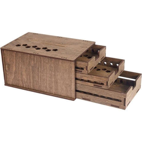 Органайзер Hapstone для точильних каменів розрахований на зберігання брусків «апексоїдного» формату. Матеріал – фанера 6 мм. Органайзер виконаний у форматі скриньки та призначений для зберігання точильних каменів для верстатів розміром 150х25х12 мм як на бланках, так і без них. Органайзер оброблений екологічно чистою захисною олією. У стінках органайзера передбачені вентиляційні отвори.