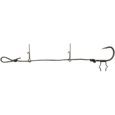 Оснащення Savage Gear Big Fish Stinger Single Hook має гачок з фіксаторами, за допомогою яких він тримається в силіконі, також подібні кріплення знаходяться на повідку. Завдяки тому, що петля ковзаюча, рибалка може змінювати довжину оснастки, залежно від розміру приманки.