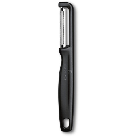 Iota від Victorinox (колір – чорний) – овочечистка з подвійним зубчастим лезом, яке забезпечує тривале збереження гостроти різальної крайки. Готування починається з ретельного очищення, тому, коли справа стосується ідеально очищених м'яких фруктів та овочів, ви можете покластися на зубчасту овочечистку Iota. Функціональність поєднується із позачасовим дизайном. Легка та ергономічна форма овочечистки ідеально лягає в руку, дозволяючи вам сповна проявити свої кулінарні навички.