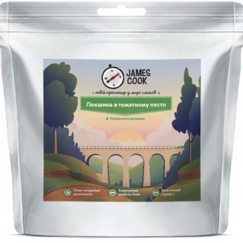 Если вы любите итальянскую кухню так же сильно, как мы – вы просто обязаны попробовать нашу вегетарианскую пасту под соусом Песто. Томатное песто чуть менее популярно чем зеленое, но однозначно не менее вкусно. Этот сдобренный приправами микс из томатов, грецкого ореха и сыра пармезан, не оставит вас равнодушным. Во вкусе пасты отчетливо ощущается вкус сыра и орехов. Для ее приготовления именно сыр а не его заменители в виде порошков или ароматизаторов. Паста в соусе Песто от James Cook богата углеводами и белками, очень сытна и как следует зарядит вас энергией. При приготовлении используются только натуральные компонеты без красителей и усилителей вкуса. Походная еда James Cook приготовлена путем сушки готовых продуктов, и именно по этому ее вкус точно такой же как и блюд, приготовленных дома.