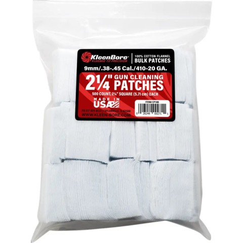 Патч для чистки KleenBore .38-.45 Cal. (9mm) - 1/4″,хлопок, 500 шт/уп, квадратные