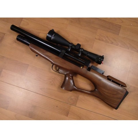 Класна компактна PCP гвинтівка з щокою, що регулюється. Прекрасний стан (!), Потужність 22.5J, купчастість відмінна. У комплекті: новий оптичний приціл Pilad 8x48 з надійними кільцями з металу, а також новий насос (комплект із ЗІПами і т.п. + качає супер) з перехідниками та заправними штуцерами. З нюансів – тріснута кришка приціла передня, є невеликі потертості барабанчиків, на фото все видно.