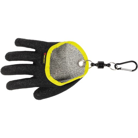 Рукавичка Select Pike-II - спеціалізована модель для риболовлі, призначена для комфортного та безпечного вилучення риби з води, а також утримання під час звільнення приманки. Крім того, цей аксесуар можна застосовувати для витягування якоря, що особливо актуально в прохолодну погоду. Рукавичка має щільну тканинну основу із зовнішнім прогумованим шаром, який захищає руку від намокання і, частково, від порізів об щучі зуби. Вона оснащена карабіном із магнітним кріпленням, що дозволяє зафіксувати її на пояс і завжди мати під рукою.