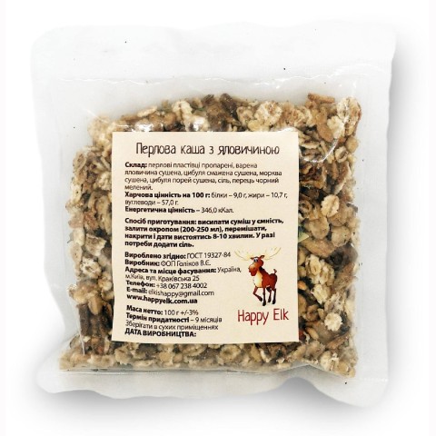 Перлова каша з телятиною Happy Elk  прозора упаковка