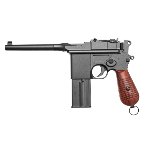 Полуавтоматический газовый пистолет Umarex Legends C96 — является репликой легендарного пистолета Маузер, который, как известно, был на частичном вооружении Германии и СССР, но приобрел популярность именно как гражданское оружие. Емкость обоймы составляет 20 шариков, для прицеливания используются нерегулируемые мушка и планка. При первом же взгляде вызывает уважение качество изготовления этого пистолета. Все детали изготовлены очень качествено и великолепно подогнаны друг к другу.