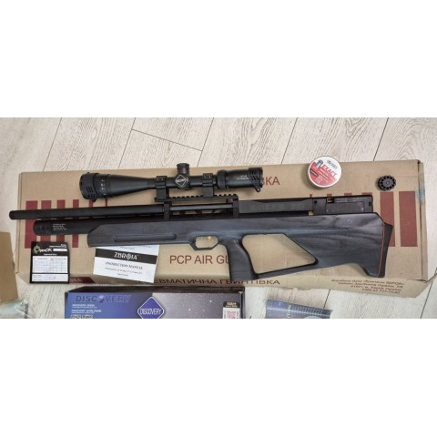 Відмінний комплект із PCP гвинтівки, оптичного прицілу Discovery VT-R 6-24X42AOE, насоса Wegley та коробки куль JSB. Настріл – 3 барабани (1 раз на пострілушках), ідеальний стан, все працює. Комплектація як на фото.Увага! Гвинтівка продається тільки при передоплаті 3500 грн.