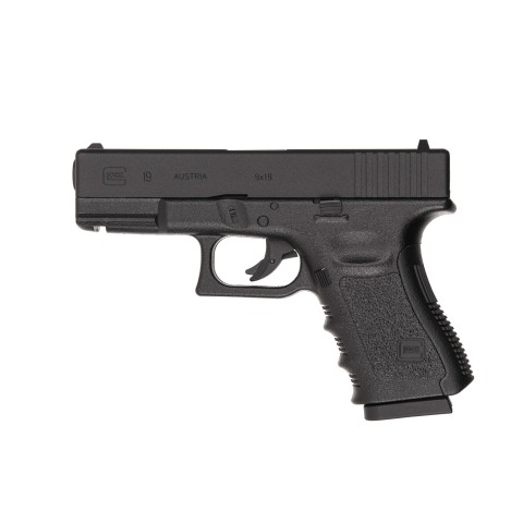 Ця копія GLOCK 19 компактна і зручна, з безпомилковим зовнішнім виглядом оригінального пістолета і великою потужністю. Незважаючи на відносно невелику довжину 186 мм, він стріляє 4,5-мм сталевими BB з дуловою енергією до 3 джоулів і важить 717 г. Як і у оригіналу, у нього металевий затвор і справжній запобіжник спускового гачка.