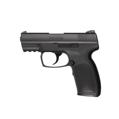 Tactical Defense Pistol 45 - модель початкового рівня для шанувальників CO₂, які оцінять простоту використання і привабливий дизайн. Капсули 12 г CO₂ можна замінити всього за кілька кроків. Змінний магазин вміщує 19 сталевих кульок BB і може бути замінений миттєво. Легкодоступний запобіжник може управлятися в положенні для ведення стрільби, а спусковий гачок подвійної дії дозволяє вести швидкий вогонь. Ствольна коробка T · D · P · 45 має планку Пикатинни для кріплення аксесуарів. Цей елегантний пістолет CO₂, простий у використанні і оснащений безліччю функцій, пропонує відмінне співвідношення ціни та якості.