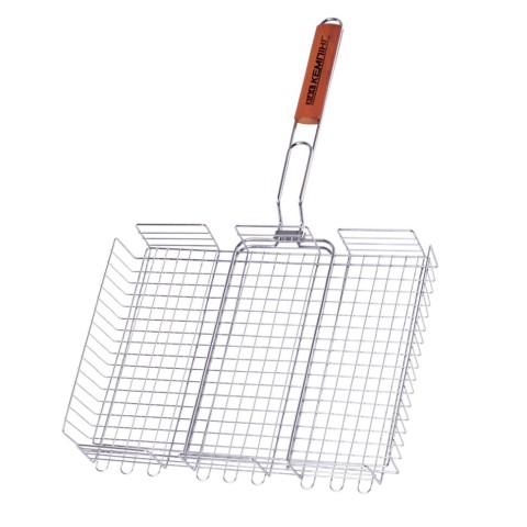 Хромована решітка з нержавіючої сталі з довгою ручкою для запікання м'яса, птиці, риби і овочів. Конструкція решітки дозволяє готувати продукти різних розмірів, по-цьому, як не можна краще, підходить для приготування саме м'яса.