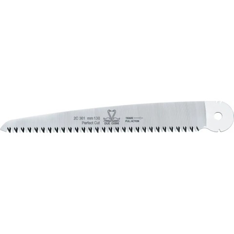 Due Cigni Replacement Blade — змінне лезо до садової пилки Due Folding Saw (2C 361/13). Клинок виконаний із високовуглецевої японської сталі марки SK-5 з твердістю 52-55 HRC. Легко кріпиться до ручки гвинтами. Довжина леза складає 130 мм.