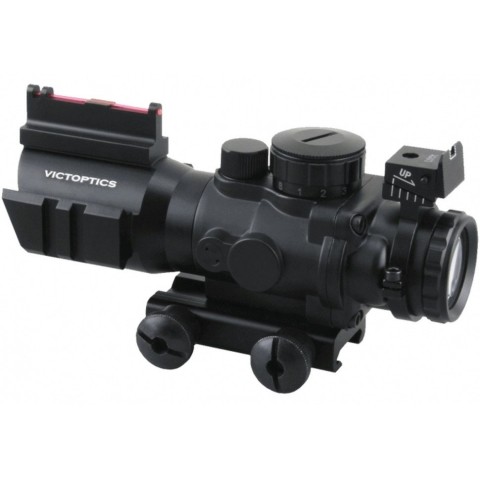 Приціл Vector Optics C1 4x32 Red, Green, Blue Chevron - це призматичний приціл, що відрізняється компактним корпусом, удароміцною конструкцією, зручною сіткою Chevron з триколірним підсвічуванням, вбудованою волоконною мушкою, широким полем зору і високою світлопередачею. Модель доповнена бічними планками для встановлення аксесуарів та підходить для баз Picatinny/Weaver.