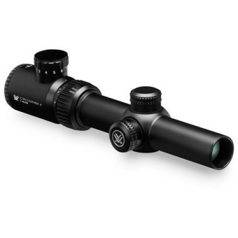 Міцний монолітний корпус з авіаційного алюмінію з анодованим покриттям захищений від подряпин, вологи, пилу і запотівання. Центральна точка сітки має підсвічування з 11-ма рівнями яскравості для стрільби в умовах зниженої видимості. Приціл Vortex Crossfire II 1 - 4x24 (V-Brite IR) рекомендований для загінного полювання, проте з успіхом може використовуватися і для тактичної стрільби.